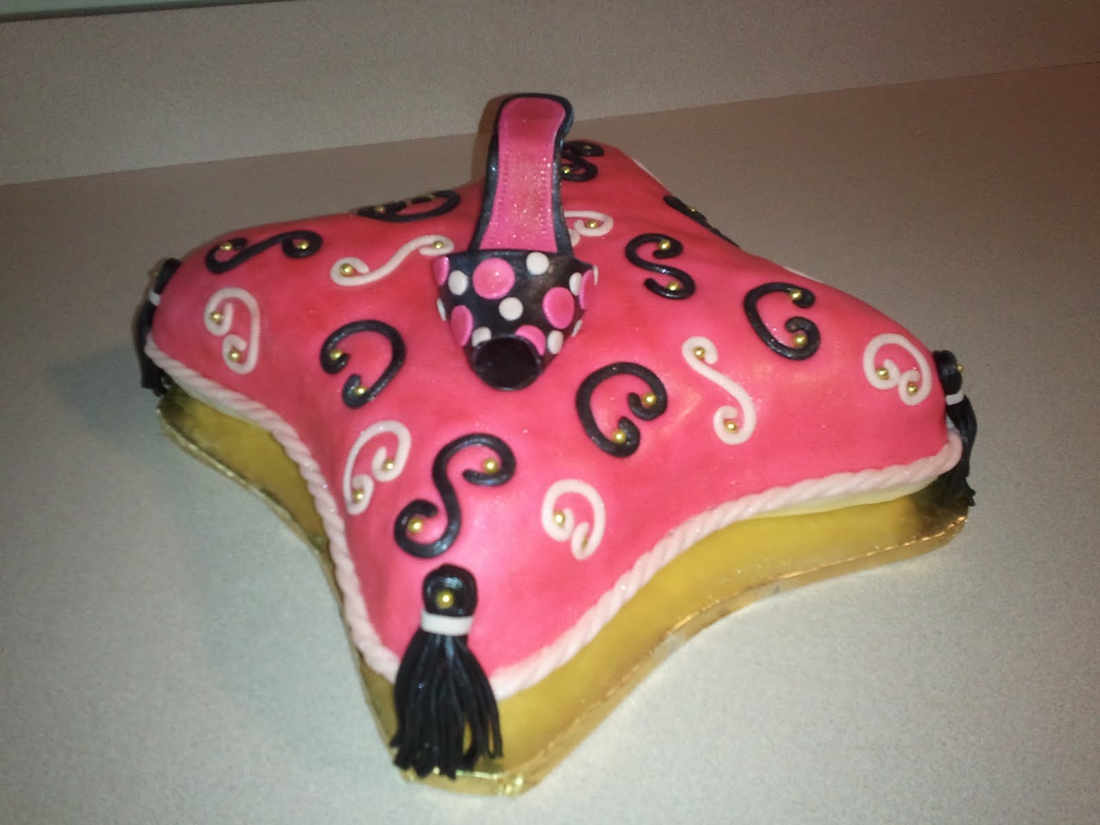 Here is one of the cake pops I made to go with my sister's (Carrie) diva birthday cake. Before I discovered these little yummies, I threw tons of cake away. For all the cake decorators out there, you know how heart-wrenching it is to level your cake and then toss all the cut off away. For large cakes, (like my 3 tiered wedding cake) you're likely to throw away enough cake to amount to a whole 3-tiered cake! Albeit a smaller one. Anyhow, Wilton has introduced the idea of cake pops (probably been around longer than what I know of so forgive me if I've given credit in the wrong place).